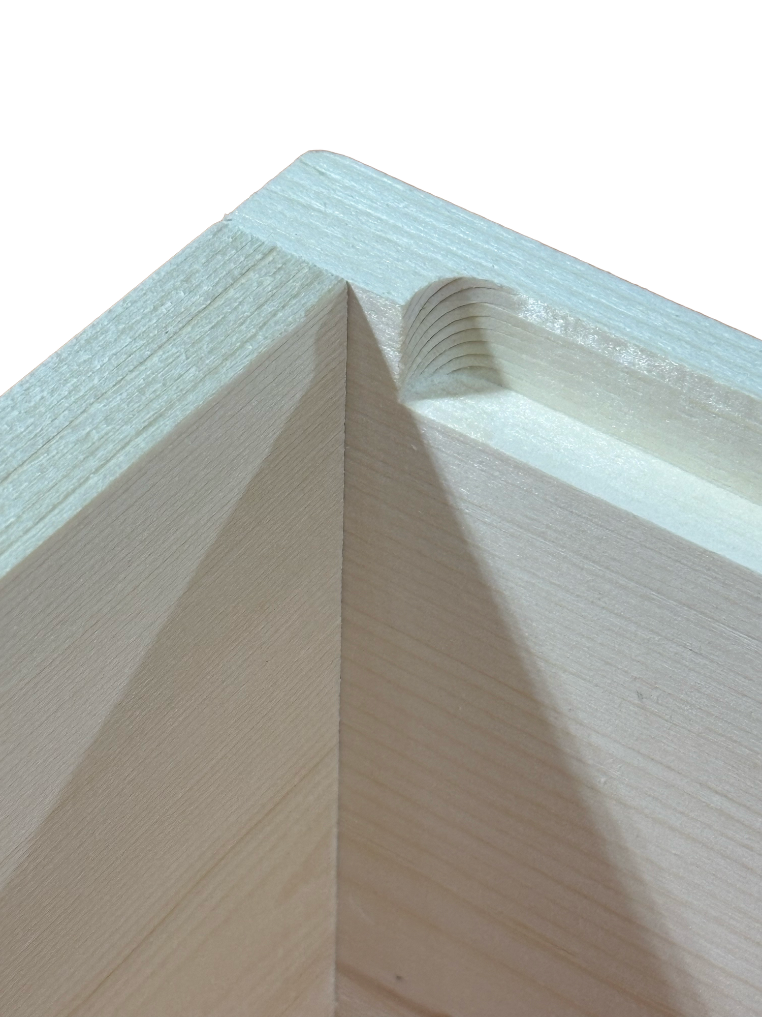 Bug Farmer™ Hiveworks APEX 10 Frame Deep Super with Frames. APEX is a meticulously crafted box featuring the popular half-blind dovetail joint insuring a tight square fit every time while reducing exposed end-grain. The APEX is designed for durability, precision, and the well-being of your bees and is perfect for those looking to expand their hive or ensure a robust structure for their bee colony. This hive ships with 10 Deep Frames and waxed foundation.