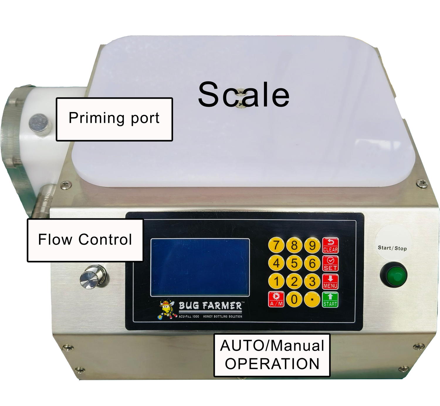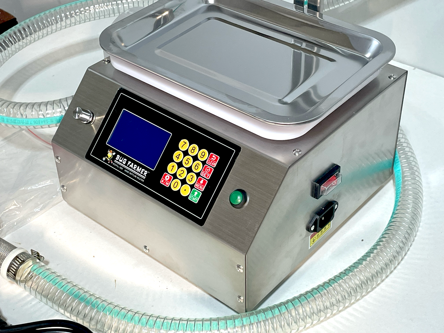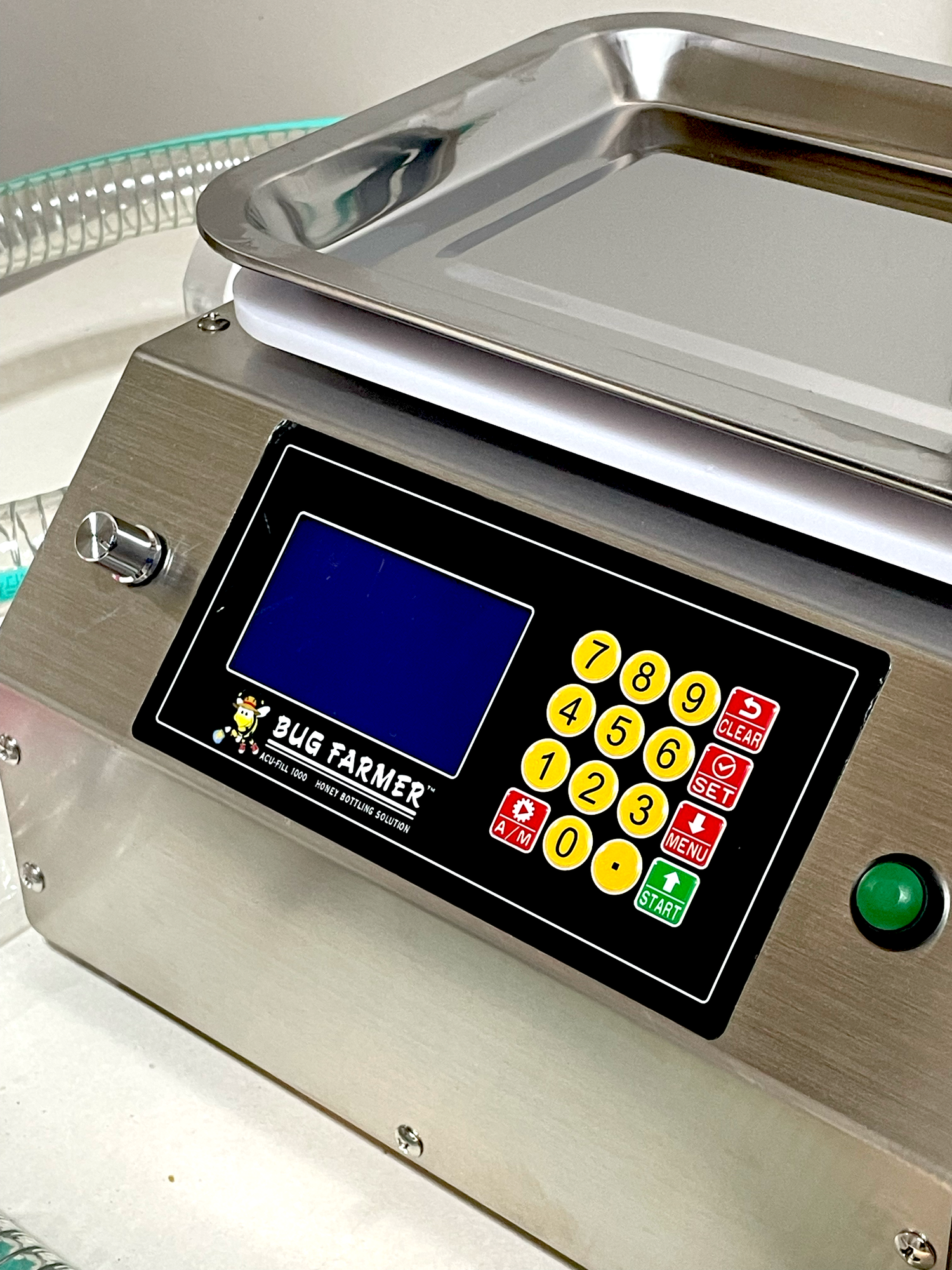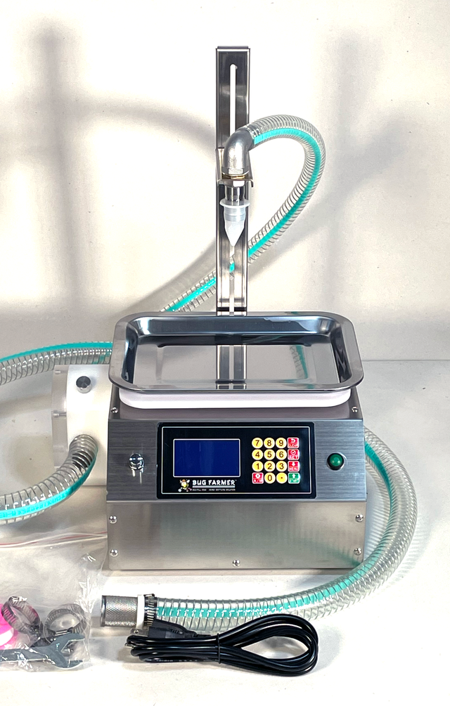 Elevate your honey bottling process with the Bug Farmer™ ACU-Fill 1000, a state-of-the-art solution designed for precision, efficiency, and durability. Crafted with beekeepers in mind, this stainless steel-bodied machine ensures easy cleaning and long-lasting performance, perfect for handling viscous honey and other fluids. Its intuitive 128×64 pixel bright LED screen, combined with advanced features, makes bottling seamless—whether in manual or automatic mode. Enjoy peace of mind with robust safety systems and customizable settings to streamline your workflow.Key Features