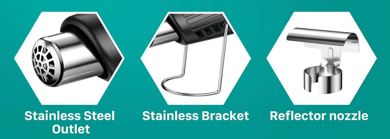 Built in over-heat protection, when the temperature is overheated, the circuit will automatically cut off forcibly, so that it will not burn the entire heat gun due to certain factors to protect user safety and extend the service life of the hot air gun.