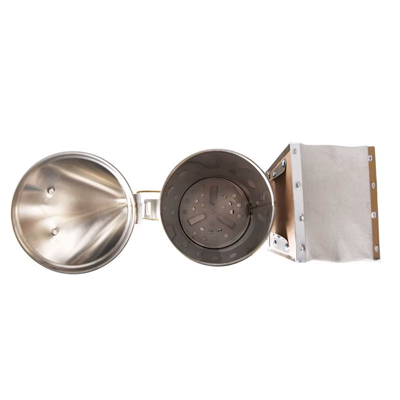 - Design: Features the classic Dadant style which is favored for its effectiveness and traditional look. The design includes a built-in caged heat shield which protects the smoker and the user from excessive heat, ensuring safe operation.